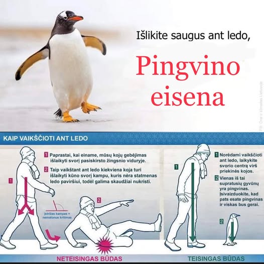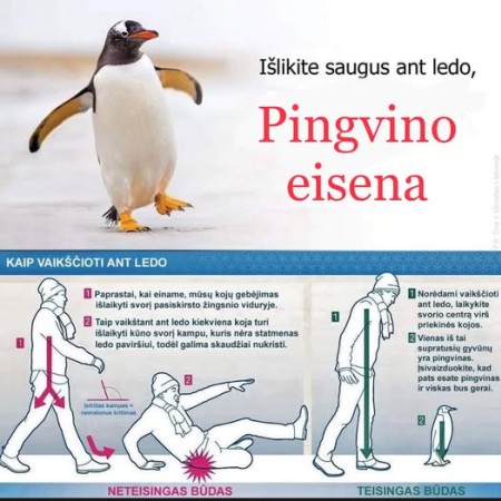 Eik lėtai, trumpais žingsniais – kaip pingvinas!