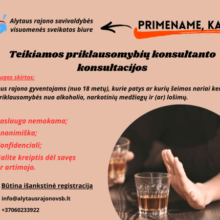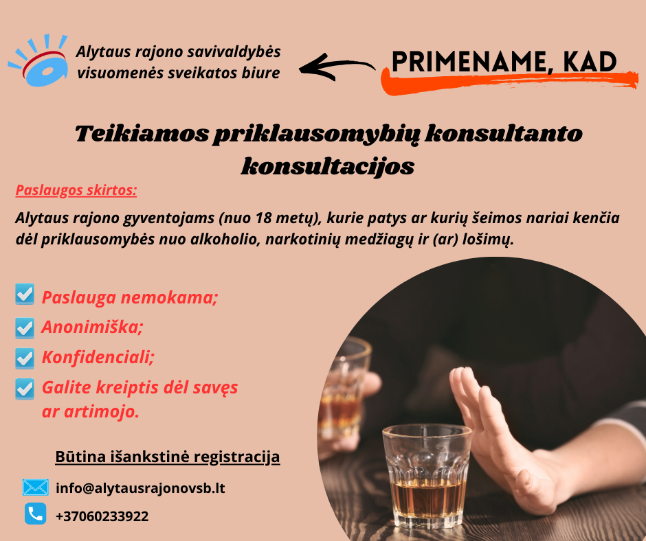 Nemokamos priklausomybių konsultanto konsultacijos Alytaus rajono gyventojams!