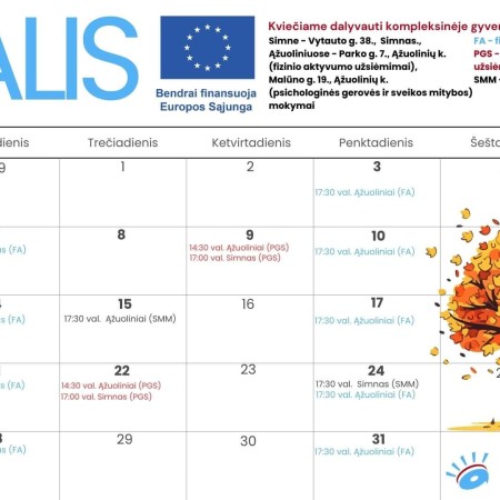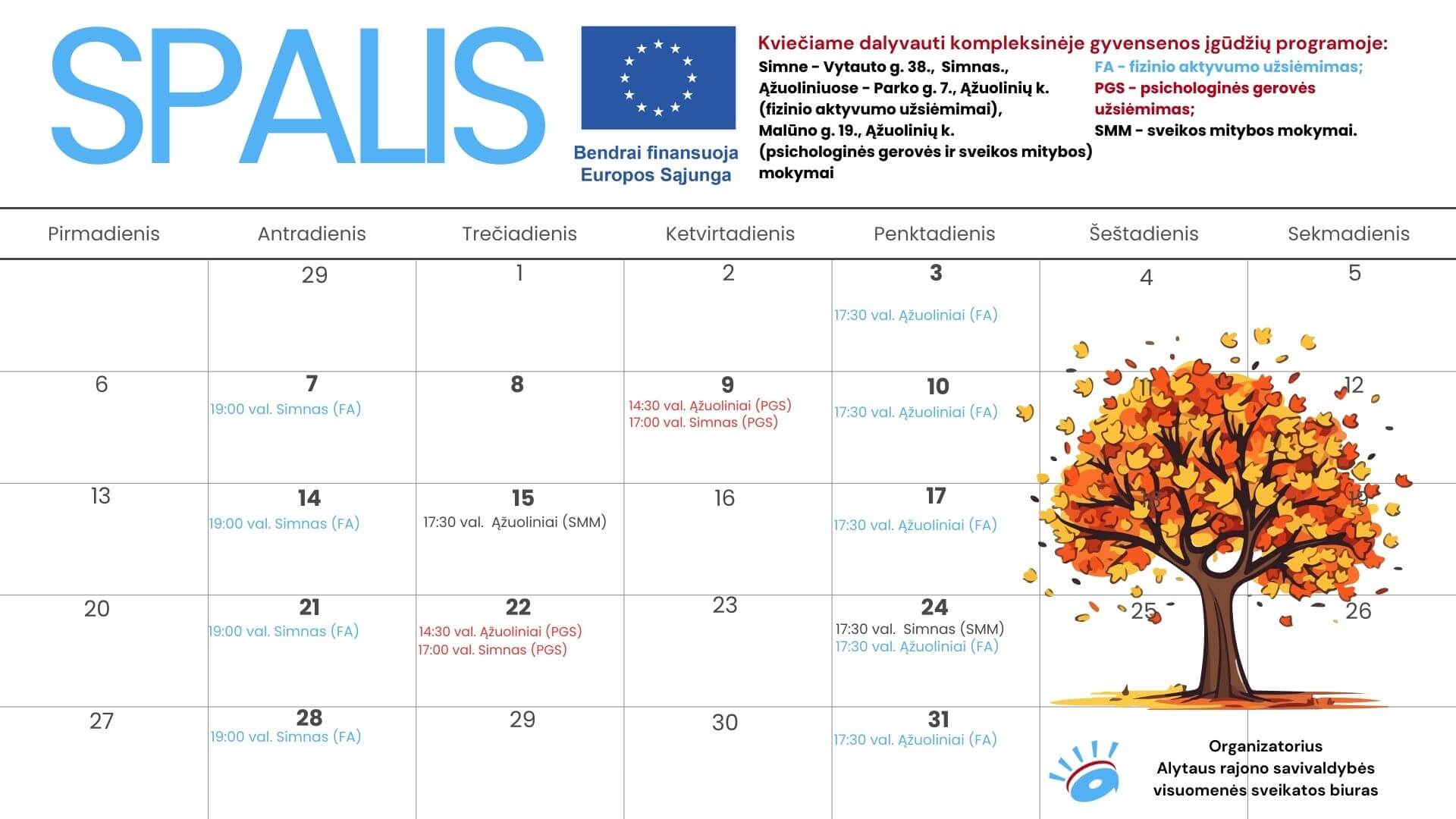 Dalinamės spalio mėnesio veiklų grafiku. Daugiau informacijos tel. +370 31521438.