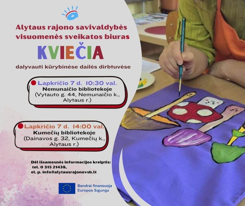 Jei norėtumėte, kad toks kūrybinis užsiėmimas įvyktų ir jūsų bendruomenėje, kreipkitės telefonu +370 315 21438 arba el. paštu info@alytausrajonovsb.lt