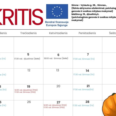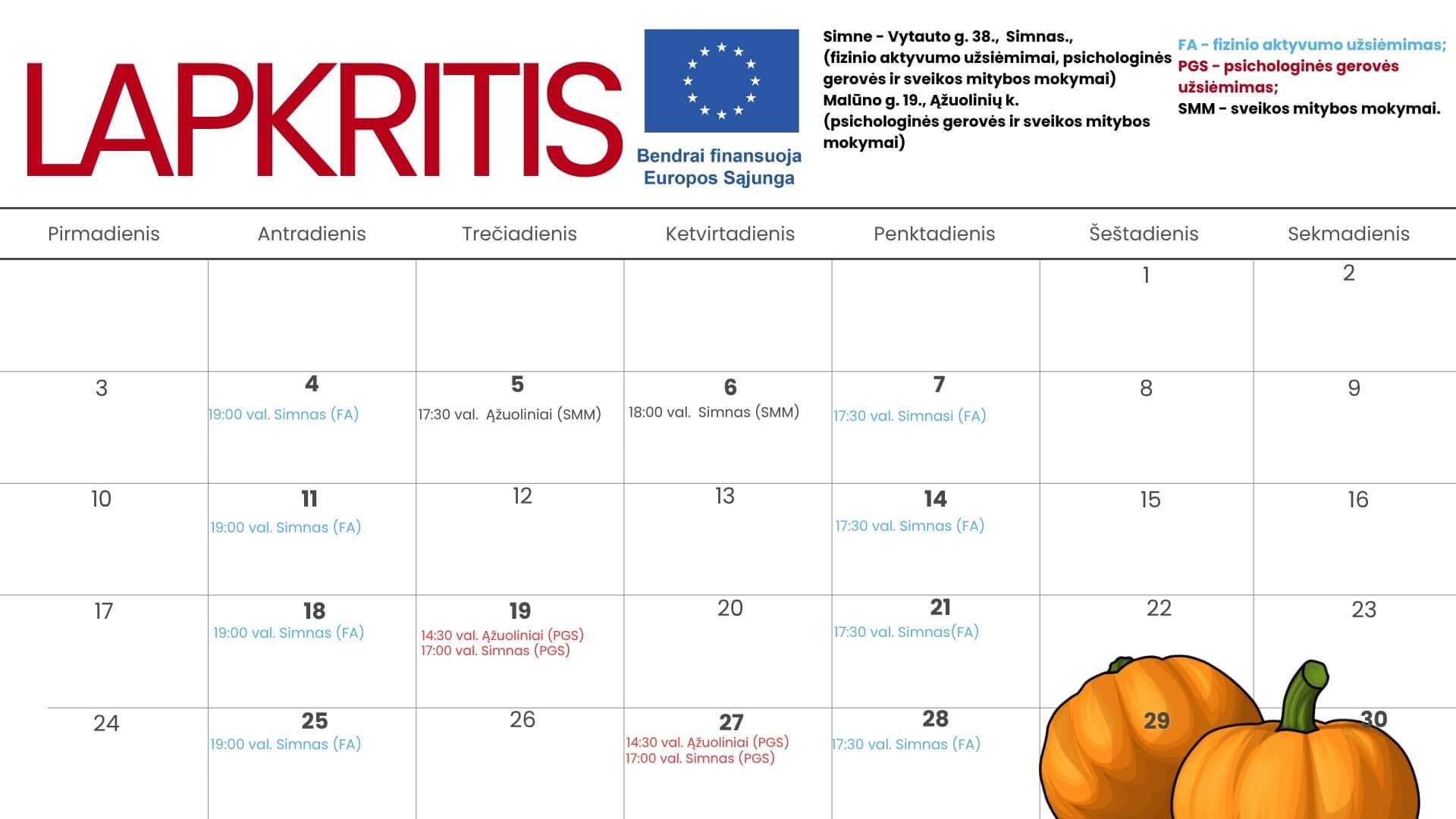 Dalinamės lapkričio mėnesio veiklų grafiku. Daugiau informacijos tel. +370 31521438.